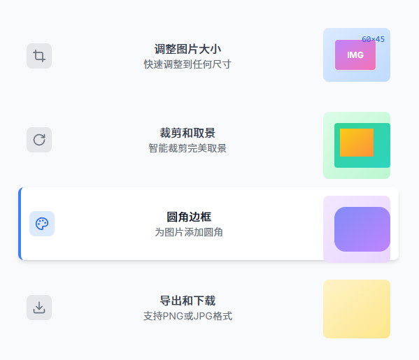 - 功能定位偏基础:目前以调整大小、裁剪、圆角为主,像滤镜、文字水印、批处理这类进阶能力没有覆盖。如果项目需要复杂排版或多图联动,建议搭配更专业的编辑器使用。